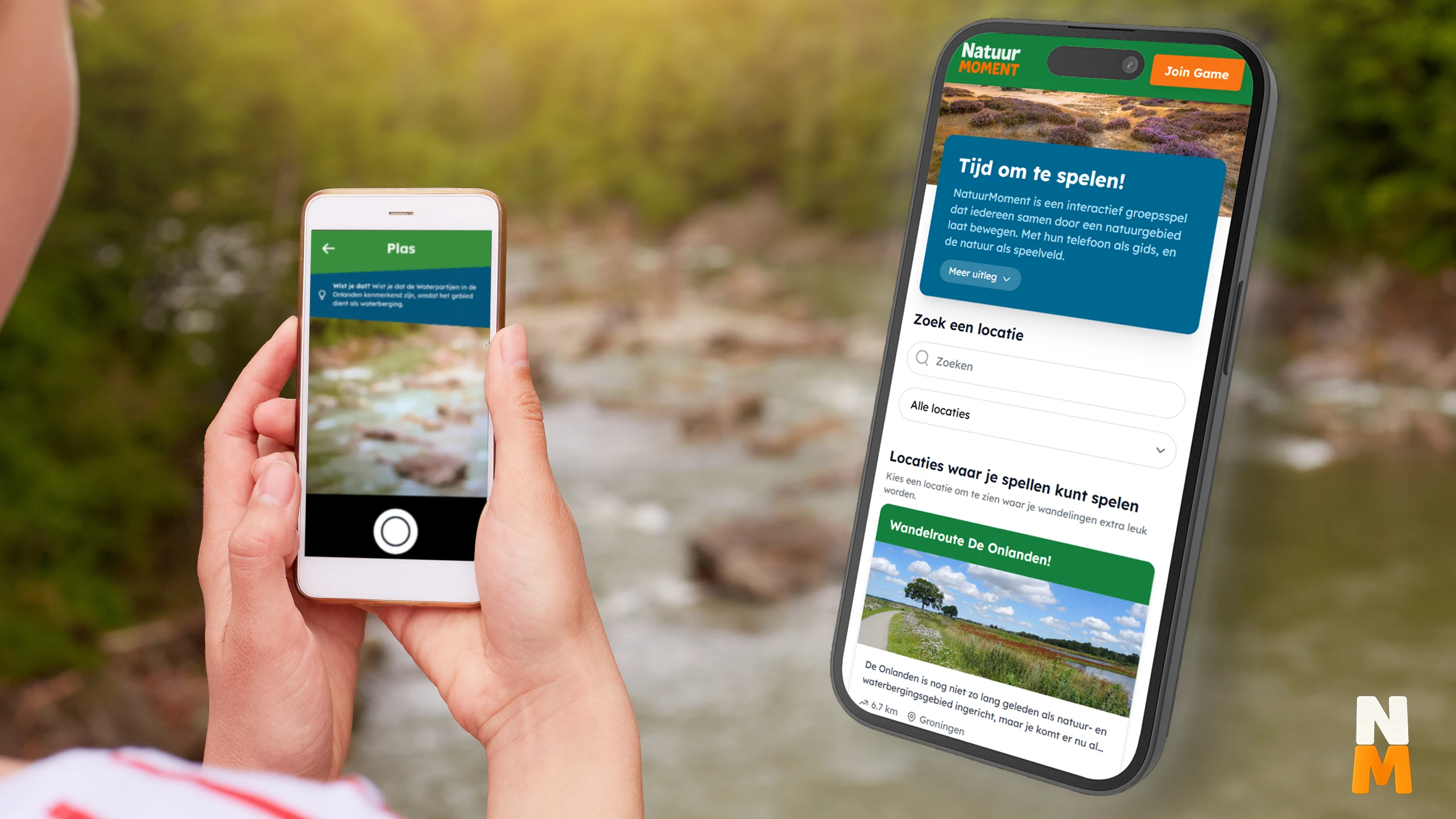 NatuurMoment is een interactief groepsspel dat iedereen samen door een natuurgebied laat bewegen.