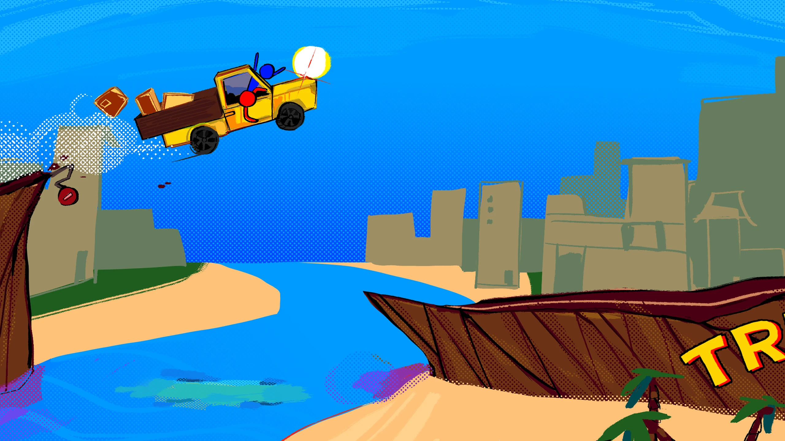 Truckin’ it is a fast-paced online two-player co-op delivery game where you have to deliver your cargo as fast as possible while also making sure you don’t lose any of the cargo. Trust your friend and work together to achieve the fastest and most efficient delivery run. There are faster but riskier roads, but also longer and safer routes; pick whatever floats your truck. Are you a risky player who likes to be surprised with different hazards and puts everything on the line for the best score? Or do you prefer to play it safe? Enjoy the silly environment and aesthetic while trying to navigate the chaos in the new upcoming hit game, Truckin’ it.